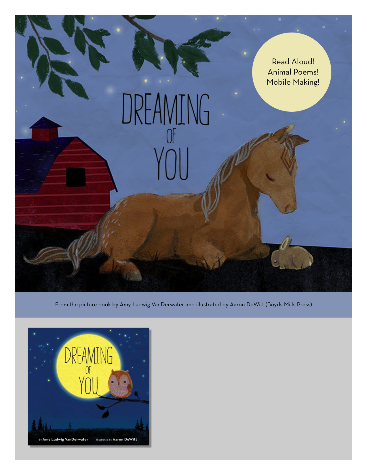The sequential poems in the picture book Dreaming of You tell us what ten animals see in their dreams.