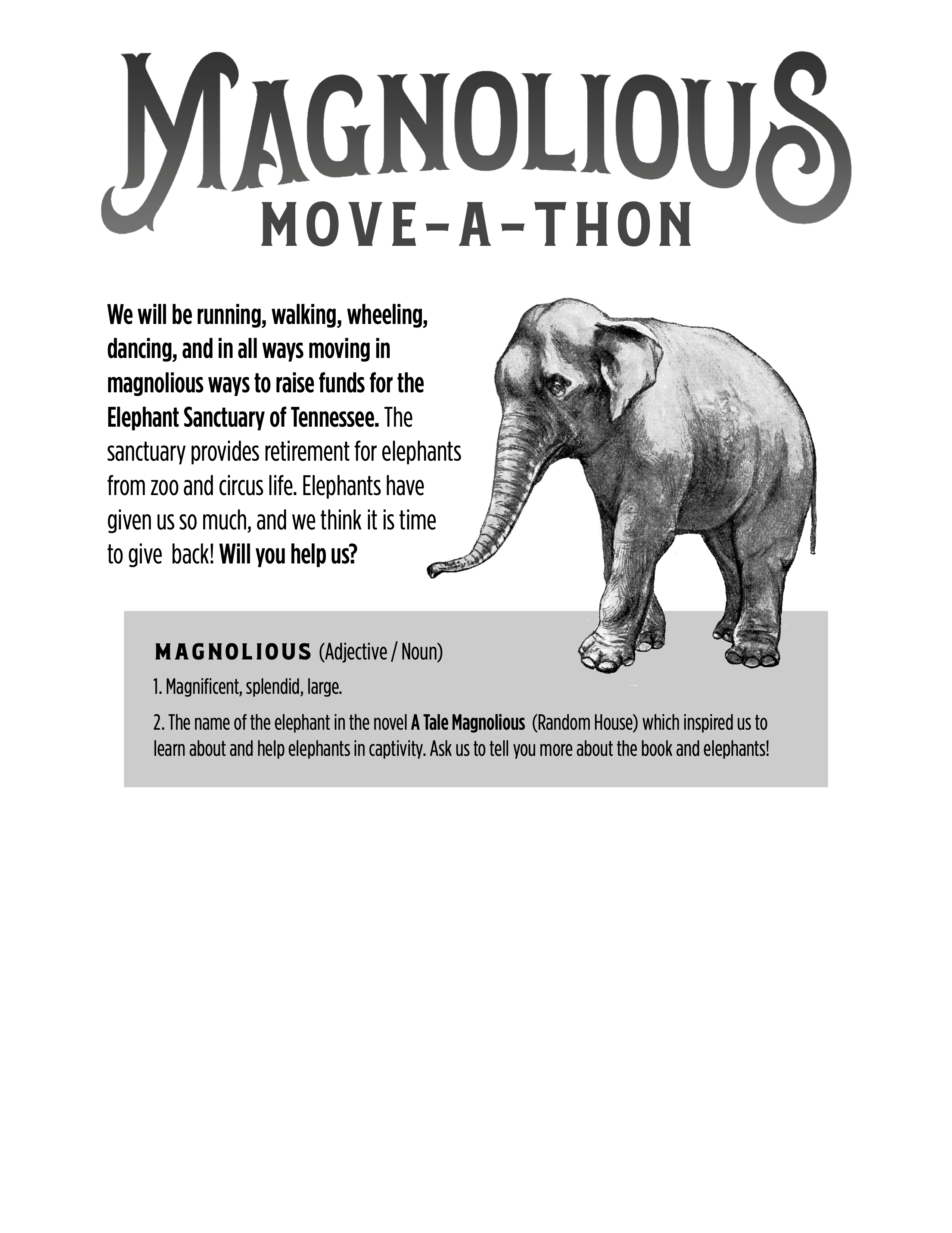 Tale Magnolious: Move-a-thon Flyer