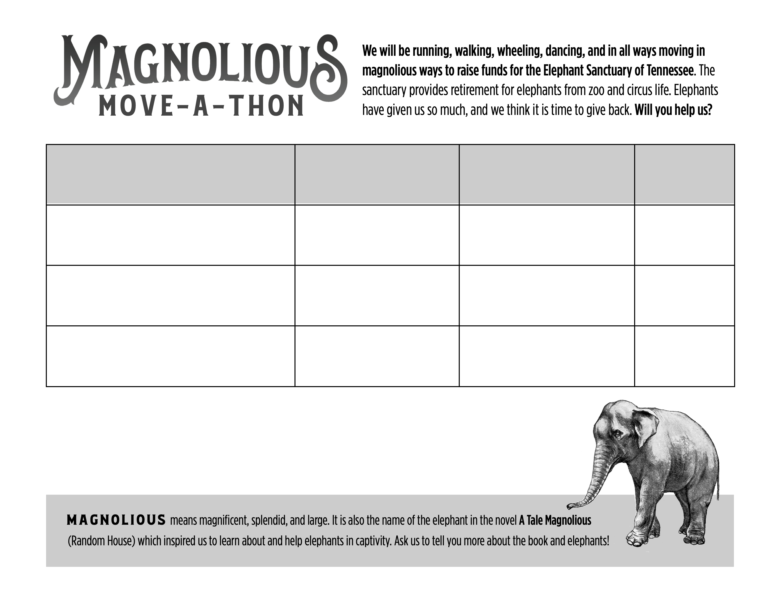 Tale Magnolious: Move-a-thon Pledge Sheet