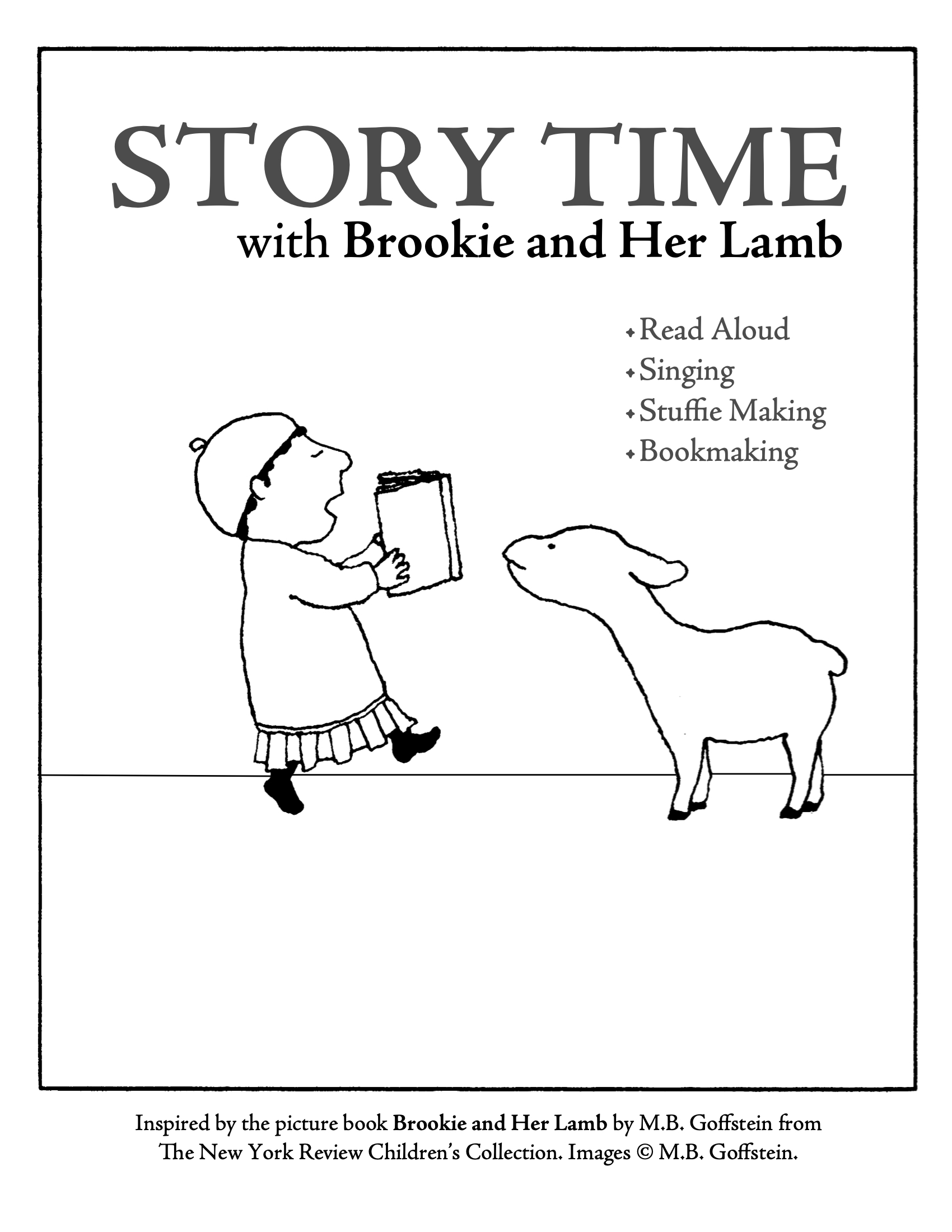To engage your readers in your space or online, we have provided a series of activities drawing on the most engaging elements of Brookie and Her Lamb: the love of Lamb, the kindness and ingenuity of Brookie, and the power of singing and reading together. Activities include: